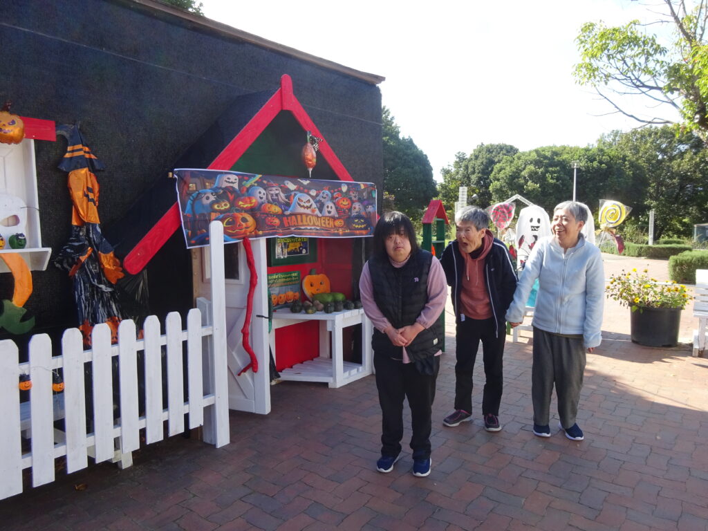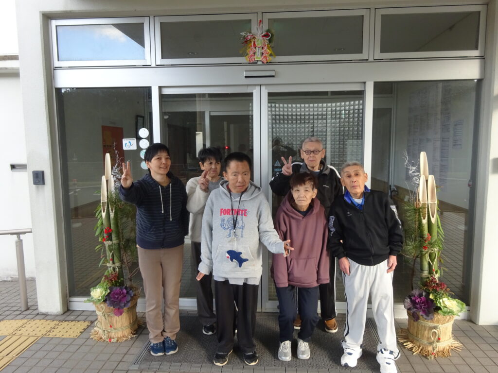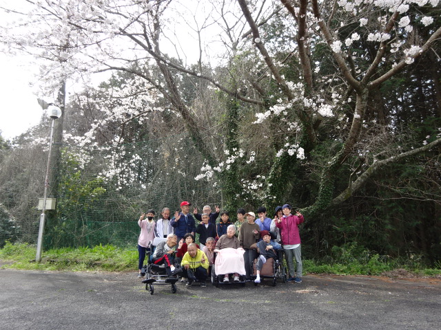 園内に完成したお散歩コースをバックに集合写真を撮りました(令和5年4月撮影)
