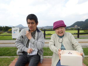 11月の1回目のお楽しみ外出では下関方面に行きました。下関市まで景色の良い海沿いをドライブし、ジョイフルでお弁当、キングカフェでデザートをテイクアウトしました。その後はリフレッシュパーク豊浦に行き自然に囲まれながらピクニ […]