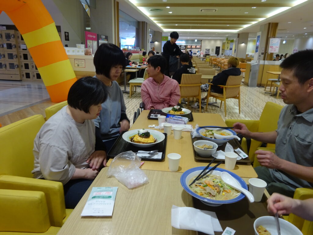 10月お楽しみ外出① 2025年11月9日 最終更新日時 : 2025年11月9日 広報担当者 10月の1回目のお楽しみ外出では、山口市までのんびりドライブし、ゆめタウン山口でそれぞれ好きな食事を堪能しました。温かいオムライスや、ボリューム満点のランチを食べ、利用者さんの最高の笑顔が見られました。 帰りは道の駅みとうで河川公園を散策しました。ゆっくりとした日程で1日を過ごすことができ、とても有意義な外出となりました。😊