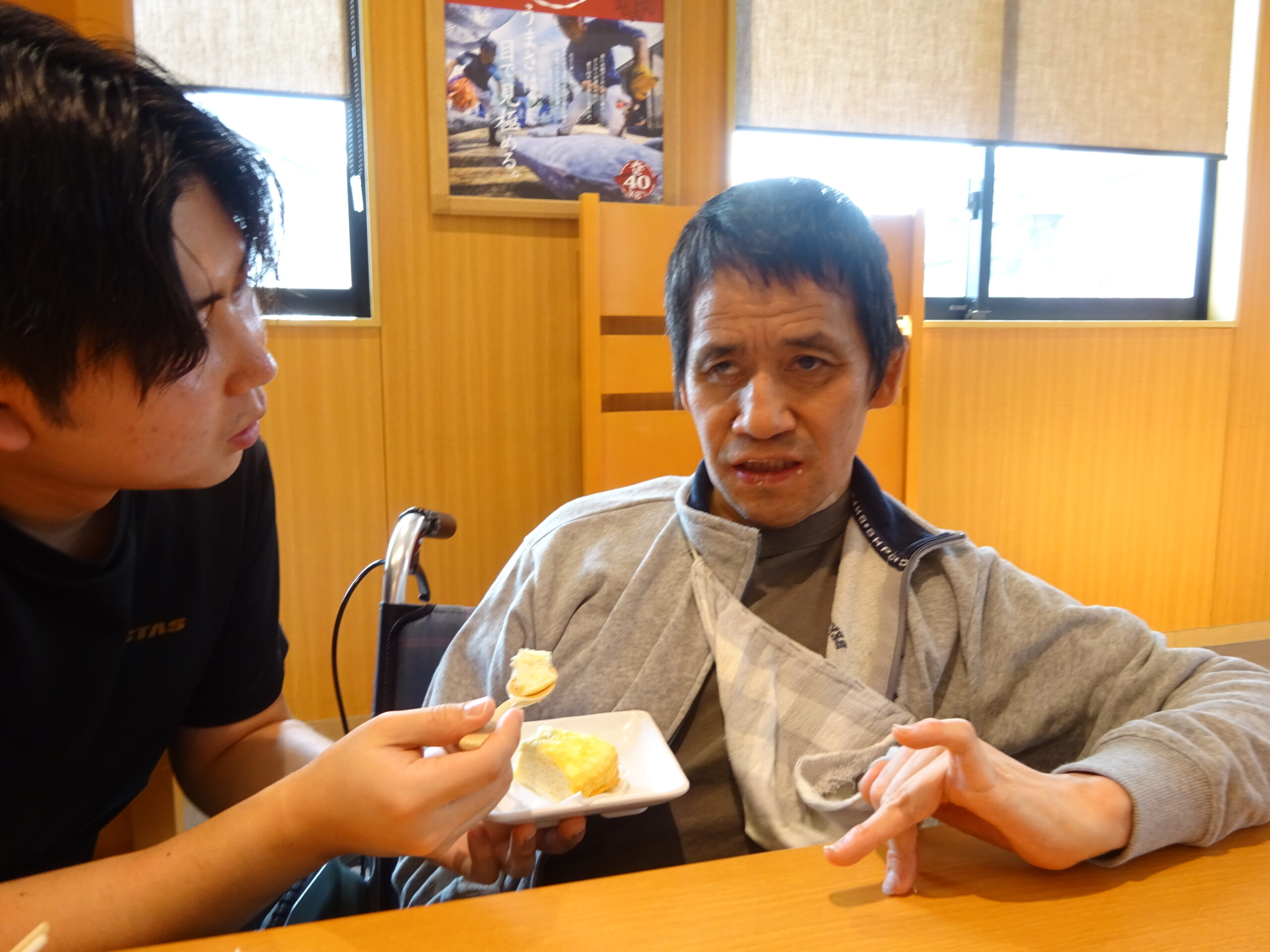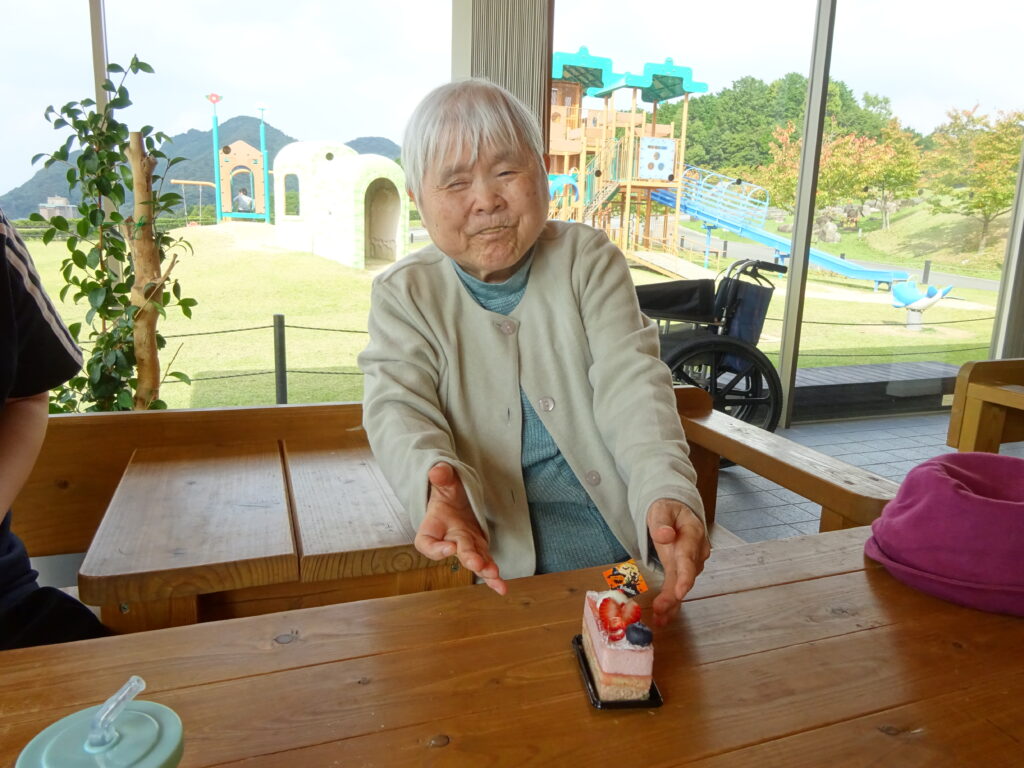 10月お楽しみ外出② 2025年11月14日 最終更新日時 : 2025年11月21日 広報担当者 10月のお楽しみ外出では萩方面に行きました。まずスシローでランチをしました🍣。日頃、外食をする機会が少ない利用者さんにとってはお寿司はとても美味しかったようで、箸を止めずに勢いよく食べていました。お寿司以外にも色々な物を食べました😊。その後、ケーキをテイクアウトし、陶芸の村公園に行きました。芝生に座り、日に当たりながらゆっくりしました。広い場所で横になるのはとても心地よかったです。その後は休憩室でケーキを食べました。ケーキもとても美味しそうに食べていました。美味しいものをたくさん食べて、景色の良い場所でゆっくり過ごす事ができ、利用者さんにとってとても満足のいく外出になりました😊。